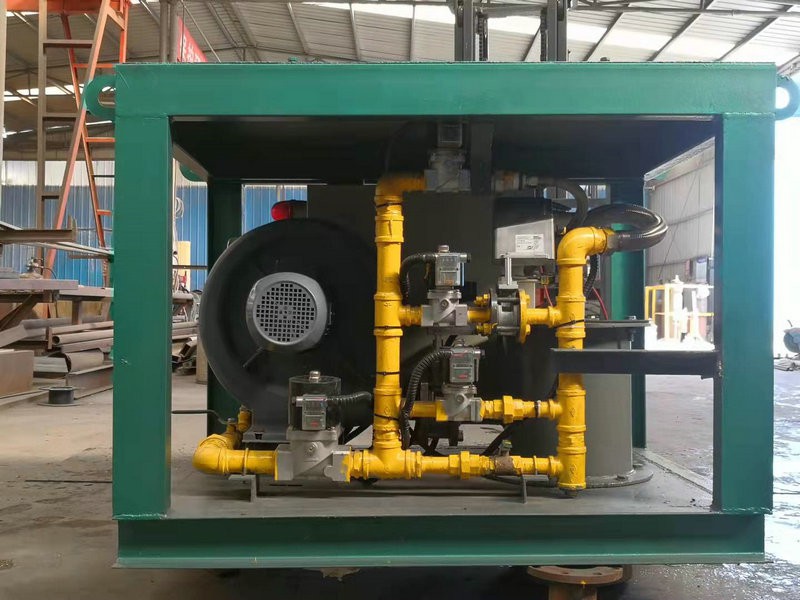 中間包烘烤器:包括燃燒器、鼓風機、助燃風管道系統和煤氣管道系統,所述助燃風管道系統一端連接鼓風機,另一端接入位于燃燒器前的煤氣管道系統,還包括通過控制煤氣管道閥門開閉自動調節溫度的控制系統,所述燃燒器為1-5個(根據膜胎尺寸確定),中間包工作層受熱均勻,易脫模節能效果明顯。